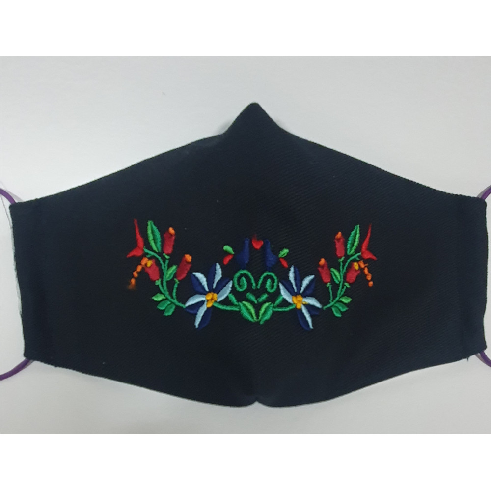 Stojom dizajnovo vyšívané ochranné bavlnené 2-vrstvové rúško s gumičkou.
