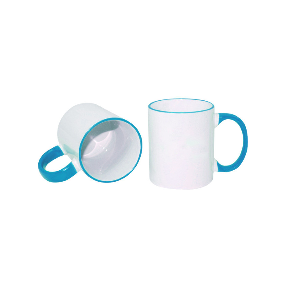 Klasický biely hrnček s farebným uchom pre sublimáciu z keramiky.
